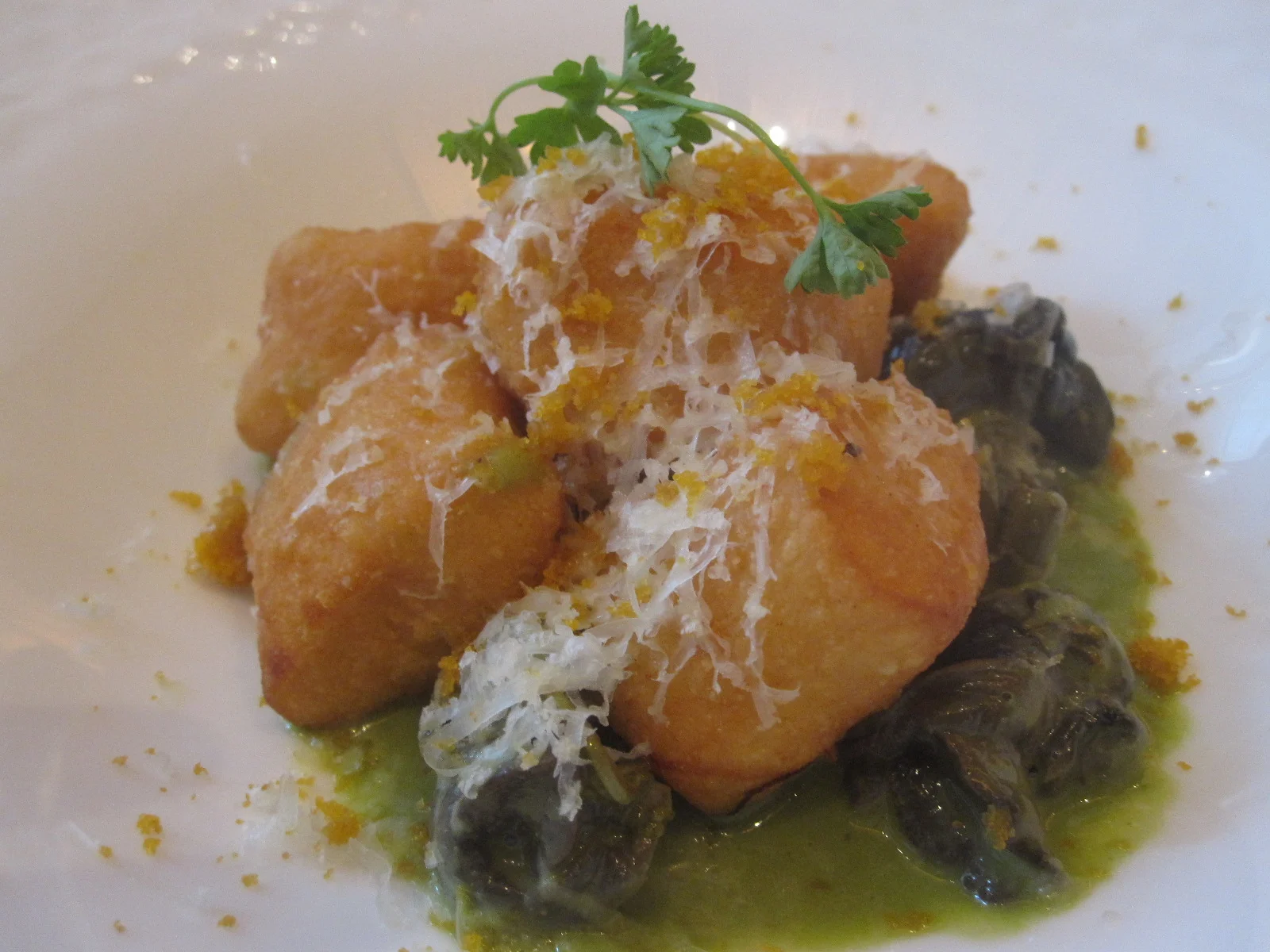 I started with the wild burgundy escargot with gruyere gnocchi, pickled fiddlehead ferns, and bottarga. This was my favorite dish of the lunch and extremely memorable. Those little gnocchi were mind-blowingly great!