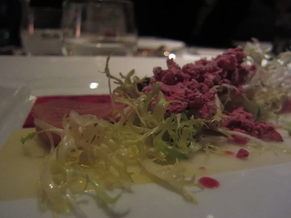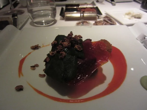 A dish of beets, roasted, smoked, and marinated with frisée, goat cheese, walnut-champagne vinaigrette, pecan nougatine, figs, and balsamic was beyond extraordinary. This salad blew my mind. The flavor and texture was great. The addition of frozen raspberries was inspired and ingenious. This dish brought a tear of joy to my eye. "Wow," is all I could say.