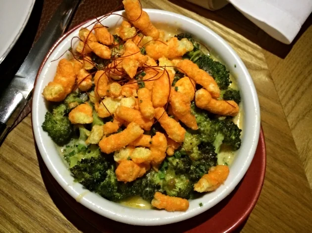 One of the craziest dishes I've ever seen on a menu is at Park Avenue Autumn- Broccoli and Cheetos. I had to order it (I swear I wasn't high). Did I love it or hate it? I actually didn't mind it, although gimmicky, it was tasty and satisfying..The only thing I would say is that if you are going to be a high-end restaurant, you should make you own version of Cheetos, instead of using the ones from the bag. I applaud their balls though.