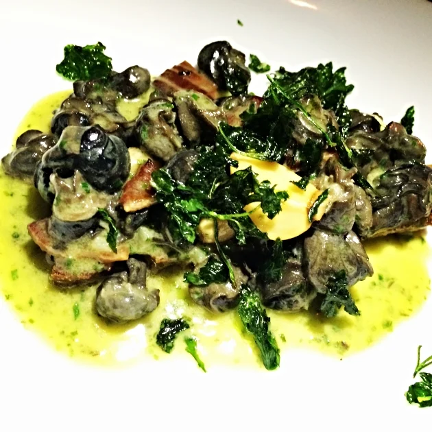 Escargot ($20) with garlic confit, Benton's bacon, & sourdough, is amazing. One of the best preparations of snail I've ever encountered.