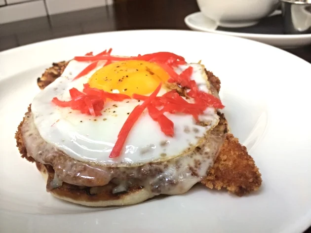 The Morning After Sandwich is one of the best sandwiches I'v eaten. Another nod to Japan. it's panko crusted pork cutlet, pickled ginger, fried egg, provolone cheese, with some more of that tonkatsu sauce. #Awesome #Perfection I loved it!