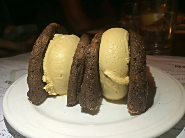 When dining at GG's you MUST order one of Nick Morgenstern's desserts. Morgenstern, who earlier this Summer opened up our city's best new ice cream parlor, Morgenstern's Finest Ice Cream, is serving that ice cream at GG's, and then some. The brownie sundae I had, topped with Madagascar vanilla ice cream, was the best brownie sundae I ever ate. It's incredible. Order it. The Ice cream cookie sandwich is also stupendous. My first time, it came with salted caramel ice cream, the second, that Madagascar vanilla. Served in between two wonderful chocolate chocolate chip cookies. It is heaven. Order it!