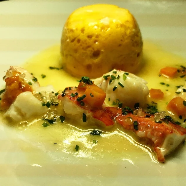 Honeynut squash Sfomato with buttered lobster, fine herbs, and finger limes is a great appetizer. Loved it!